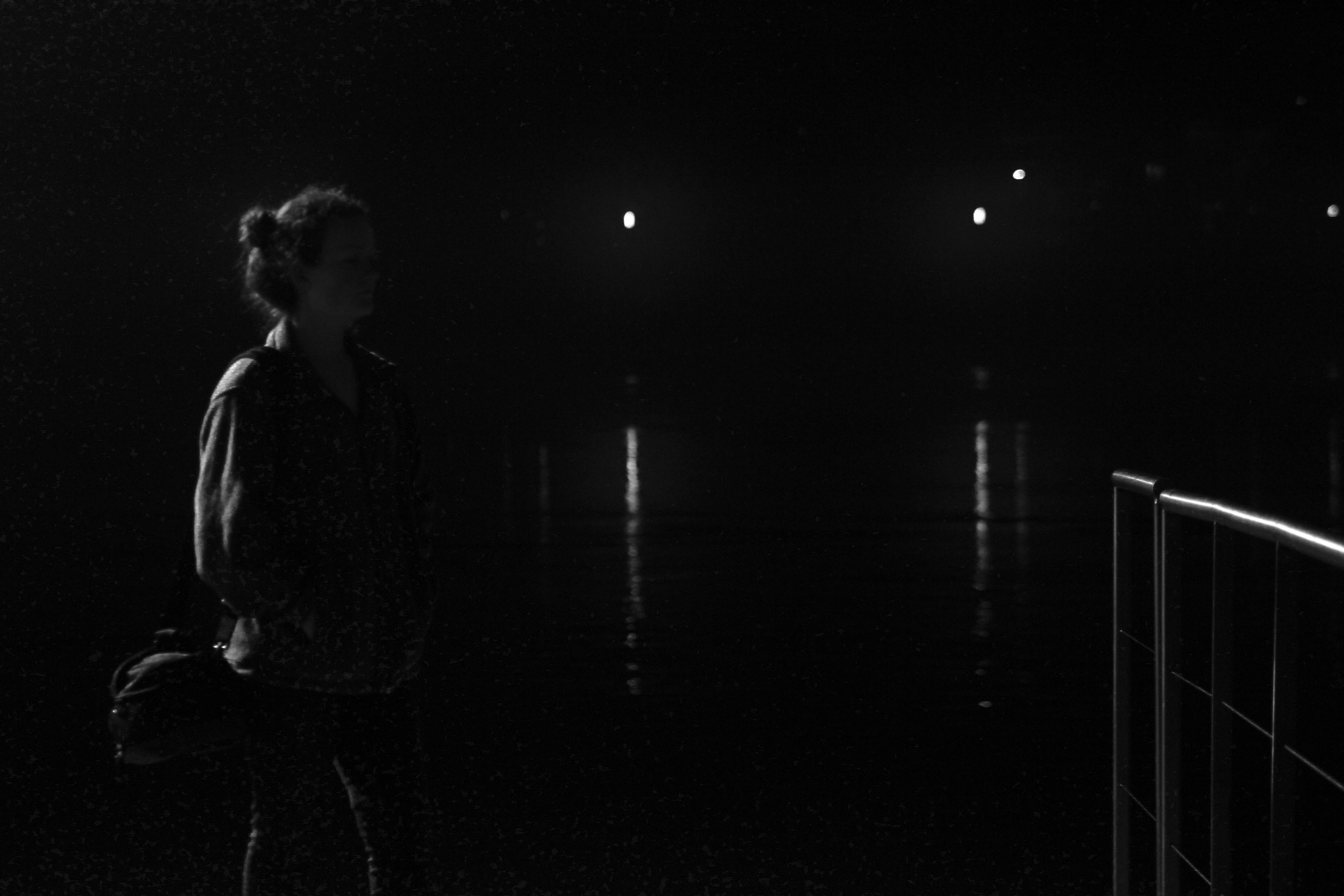Photo taken of a friend in downtown Chattanooga along the Tennessee River at night.