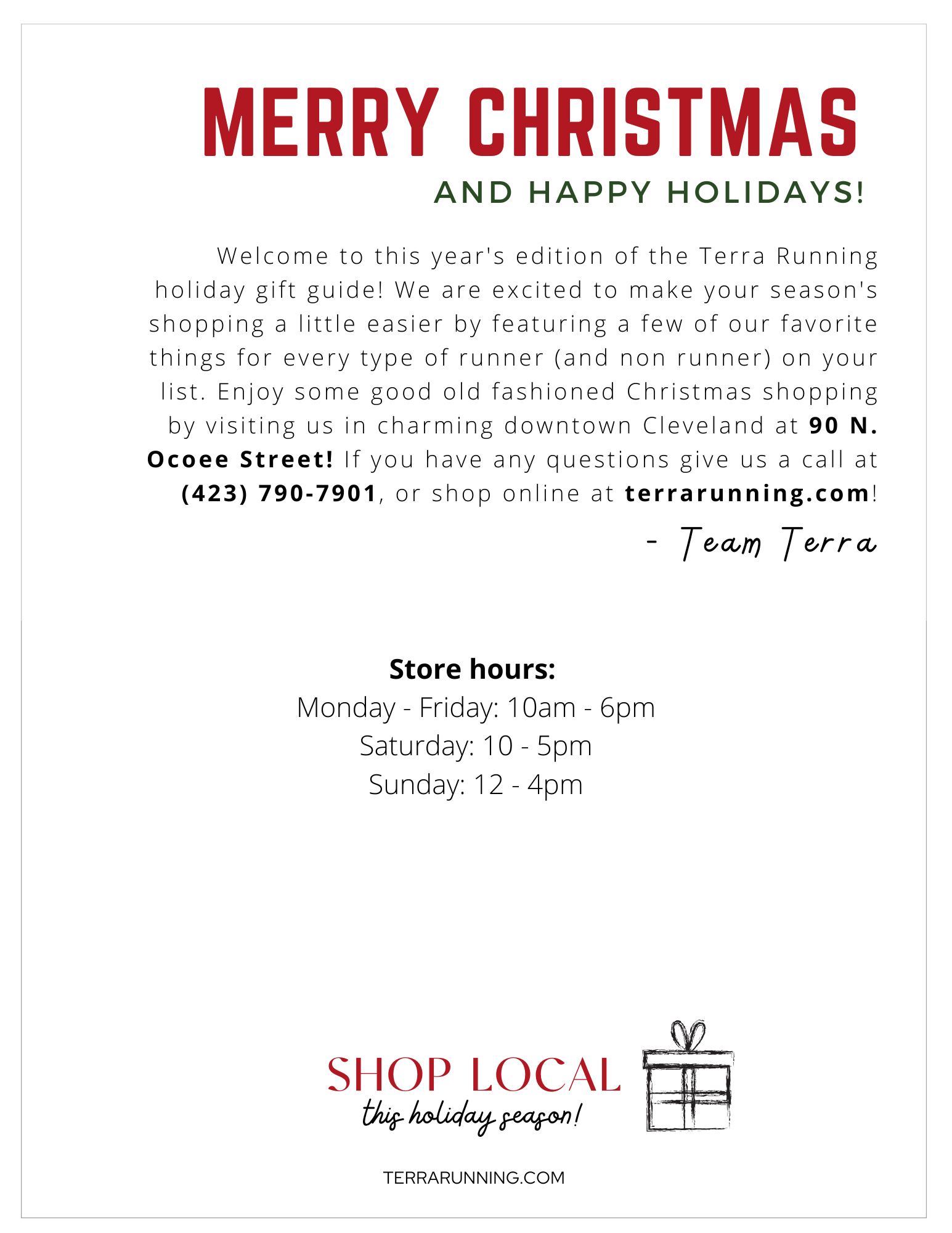 a digital gift guideĀ made for terra running company. the guide was interactive allowing customers to shop for featured items with a click.